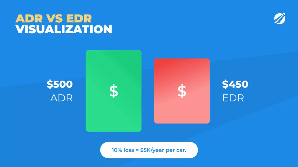 In premium segments, the gap between listed and realized rates can be significant. For example, you might advertise a sports car at 500 USD per day, but once you account for seasonal discounts, loyalty offers, or multi-day packages, the actual income per rental day might fall closer to 450 USD. On paper, it looks minor, but across dozens of bookings, the lost revenue can easily reach several thousand dollars.