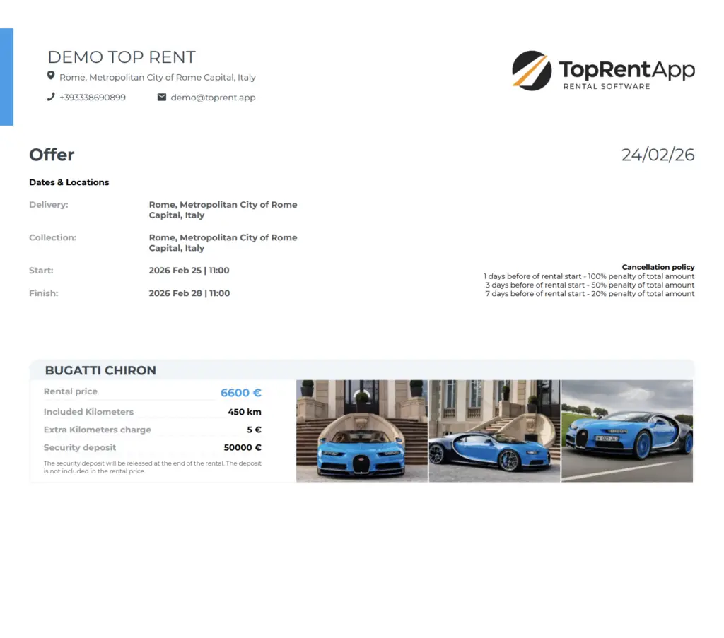 The Offer Generator helps you create structured rental proposals directly inside TopRentApp — without manual calculations, scattered messages, or recreating bookings later.