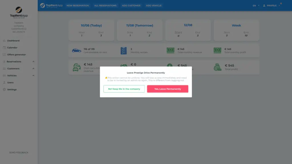 The “Leave Company” confirmation modal has been redesigned to prevent confusion with logout. Instead of a simple Cancel/Ok dialog, it now provides a clear warning with two distinct actions: