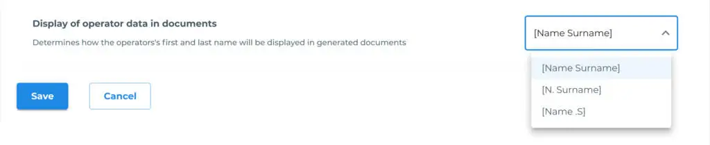 A new setting in the offer generator lets companies choose how operator names are displayed in PDF offers: either full surname with initial, or initial with surname. This addresses privacy concerns and allows businesses to decide the preferred format.