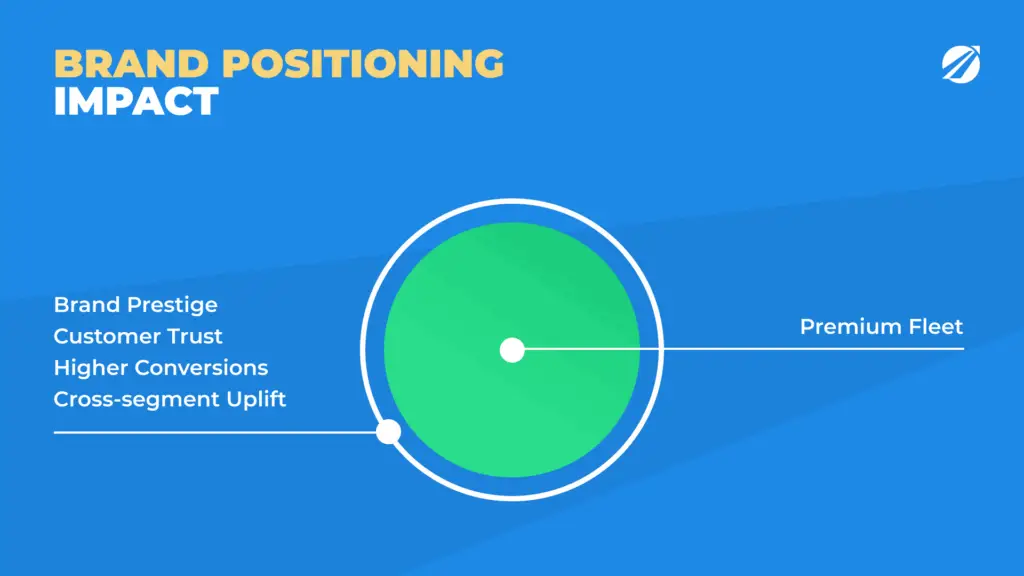 Offrire veicoli premium consente al tuo brand di noleggio di spostarsi verso una fascia più alta di mercato: puoi attrarre clienti di maggior valore, migliorare la percezione (“abbiamo le migliori auto”) e ottenere un vantaggio competitivo in termini di marketing. L’effetto alone si estende all’intera flotta (standard + premium), poiché i clienti che percepiscono l’azienda come premium potrebbero scegliere anche le auto standard come opzioni “di livello superiore”. Ciò può giustificare investimenti in una migliore manutenzione dei veicoli, standard di servizio più elevati e strategie di upselling accessorie.