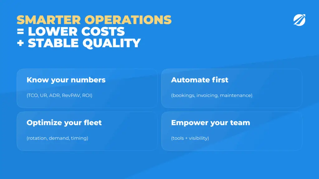 Ridurre i costi operativi non significa tagliare, ma allineare. Quando ogni euro sostiene l’utilizzo, la soddisfazione del cliente o la salute della flotta, l’efficienza diventa una strategia di crescita, non una tattica di sopravvivenza. Gli operatori meglio gestiti non spendono meno — spendono in modo più intelligente.